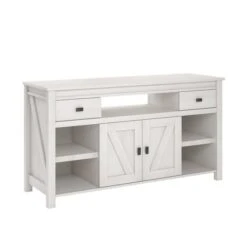 - Made from laminated MDF and particle board and finished with a ivory woodgrain finish, this TV Stand is inspired by the weathered look of an old barn
