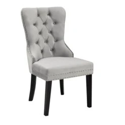 Brassex Set Of 2 Colista Grey Contemporary Genuine Leather Upholstered Side Chair (Wood Frame)