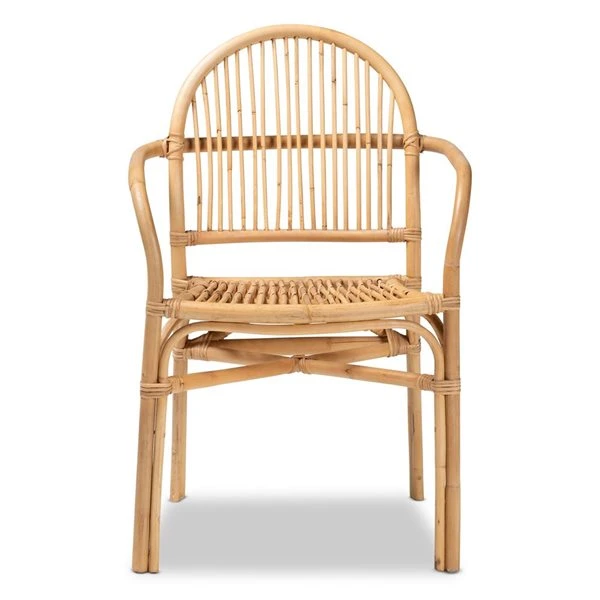 Renew the adoration for your dining space with the remarkable allure of the Tugera dining chair. Made in Indonesia, this chair is handcrafted by skilled artisans with natural rattan. The round backrest is interlaid with slim rattan rods for a smooth embrace, while the pronounced armrest offers convenient comfort. The Tugera will arrive fully assembled and features angled legs connected by a crisscross base for excellent stability and support. Encapsulating the allure of an exotic retreat, the Tugera dining chair elevates the mood of any occasion. Due to the nature of the natural materials used in this product, it may have variations in areas such as, but not limited to, colour, pattern, grain and texture. The hair-like strands of rattan/rattan fibre are common due to the nature of the material.