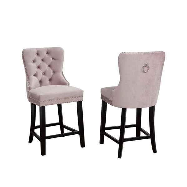 The Verona stool is a welcome addition to any chic dining space. The elegant but durable polyester fabric features a luxurious velvety finish for an inviting look and feel. Traditional tufted accents on the comfortably cushioned seat back are a handsome compliment to the sophisticated and sturdy nailhead trim. A convenient chrome-plated pull handle on the back adds modern appeal and makes it easy to reposition this dining chair as needed. With its fashionable royal blue colour and dark wooden legs, this versatile chair fits seamlessly into any contemporary or traditional décor scheme. Group multiple Verona counter stools around a table or bar to create an elegant dining set or place them individually around your home as accent pieces or for extra seating when entertaining.