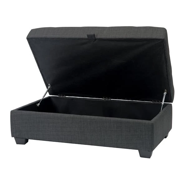 Enjoy this decorative multifunctional ottoman from CorLiving®. Upholstered in dark grey fabric, it’s a practical solution for many areas in your home. Features a comfortable foam padded upholstered top surface finished with top stitched edge seams and stylish tufting. This coffee table/ottoman opens for plenty of additional storage space. A great accent piece in any living space.