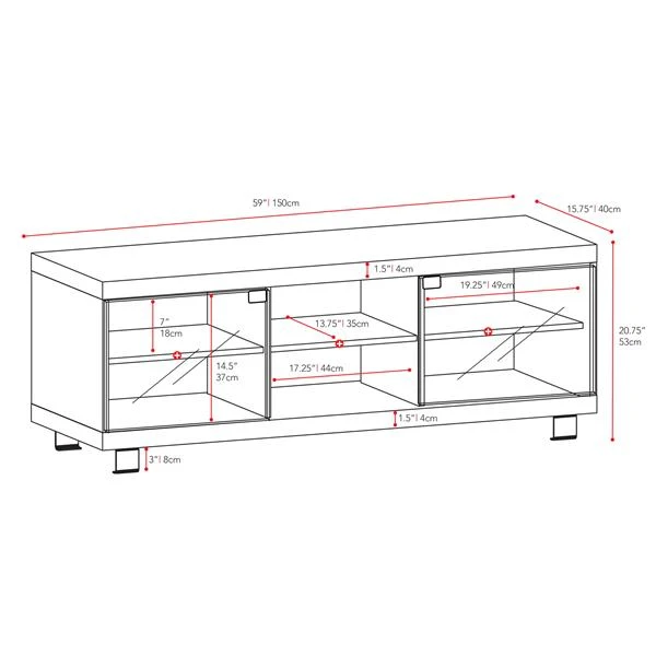 Introducing the highly sought-after TV stand from the Holland Collection by CorLiving®. Our strong and lightweight thick panelled construction creates a solid and easy to handle profile ideal for any living space. This stand comes in our sleek signature ravenwood black finish and accented with tinted easy touch tempered safety glass doors. This stand can accommodate most TVs up to 68″ and offers adjustable shelving to house an array of components.