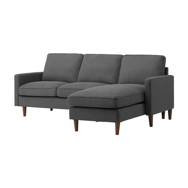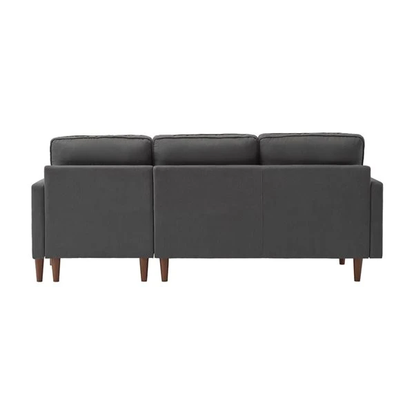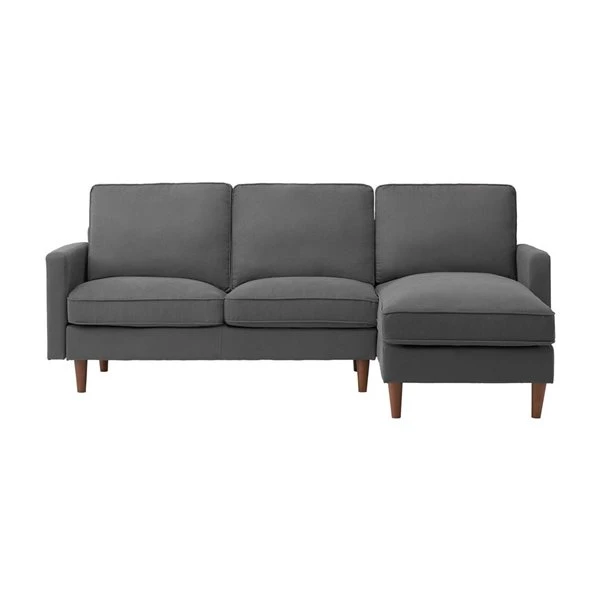 The Lena reversible sectional sofa offers comfort and versatility in a stylish package. Configurable in both right and left-facing arrangements, it will be easy to fit this piece into any space in your home. The sectional is constructed of solid wood legs and features removable back and seat cushions providing you with a classic sectional sofa that will stand the test of time. So whether you want to create a relaxing space for friends or family, this sofa is ideal for a modern home or apartment.