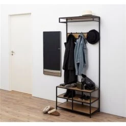 Seaford Industrial Freestanding Clothes Rack With 3 Shelves And Hooks