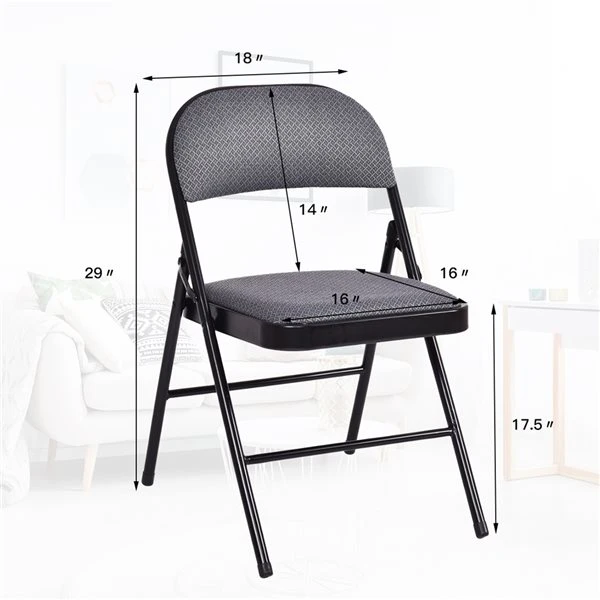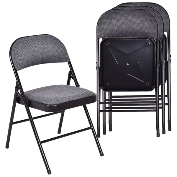 This is our 4-piece folding chairs set, which is lightweight and suitable for many occasions such as parties and events. Featuring high quality powder-coated steel frame, these chairs will assure you comfort and reliability. The fabric seat and backrest are filled with high density sponge, making it more comfortable during a long time meeting. Its foldable construction makes it easy to store and carry. They are almost suitable for anywhere, home, garden, offices, etc.