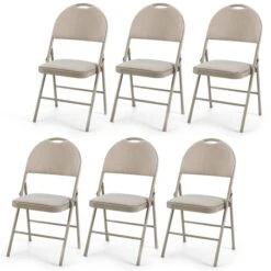 Costway Indoor Beige Metal Upholstered Standard Folding Chair – 6-Pack