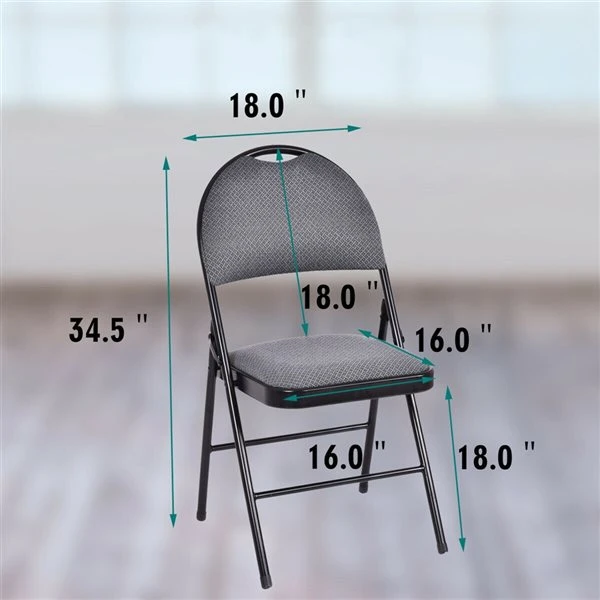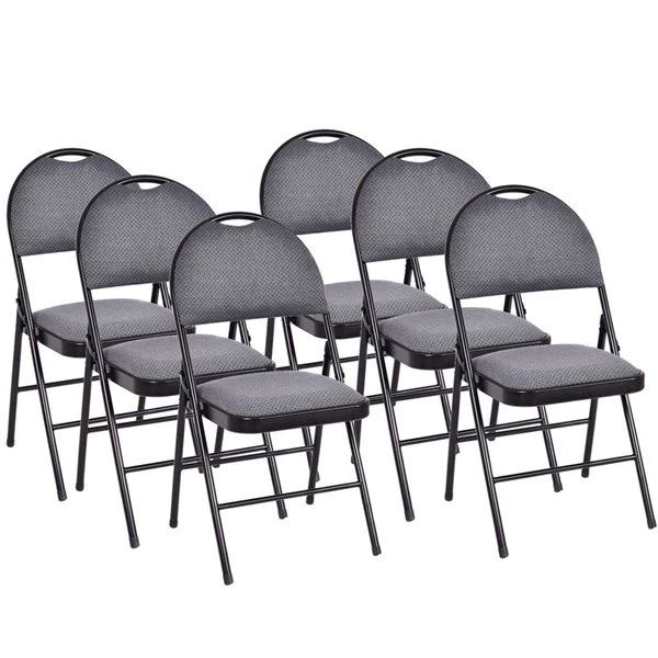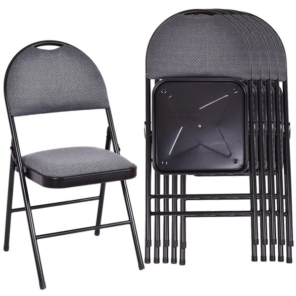 This is our 6-piece folding chairs set, which is lightweight and suitable for many occasions such as parties and events. Featuring high quality powder-coated steel frame, these chairs will assure you comfort and reliability. The fabric seat and backrest are filled with high density sponge, making it more comfortable during a long time meeting. Its foldable construction makes it easy to store and carry. They are almost suitable for anywhere, home, garden, offices, etc.