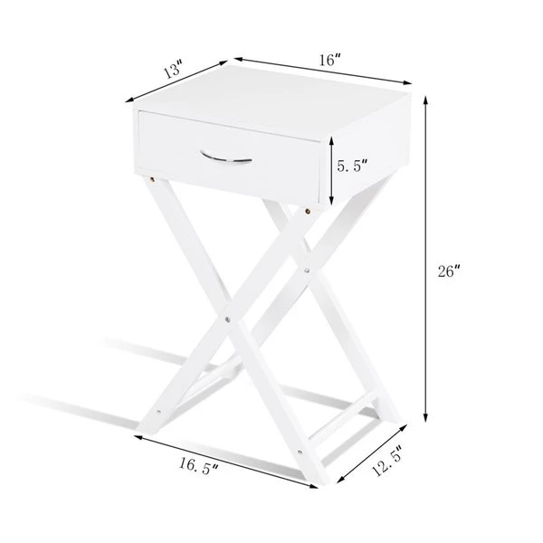 The simple but practical end table features a drawer and spacious tabletop making it convenient to display and store your things. On the top, you can place your table lamp to read or your photo frames to decorate; on the drawer you can store books, magazines, etc. It saves space and helps keep your room neat. Made of MDF, the entire structure remains very solid and durable. And even more, it has 4 durable x-shape feet which ensures stability.