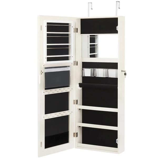 - Hang the jewelry organizer over a door with the equipped hooks (3 different heights available) or mount it on the wall with screws