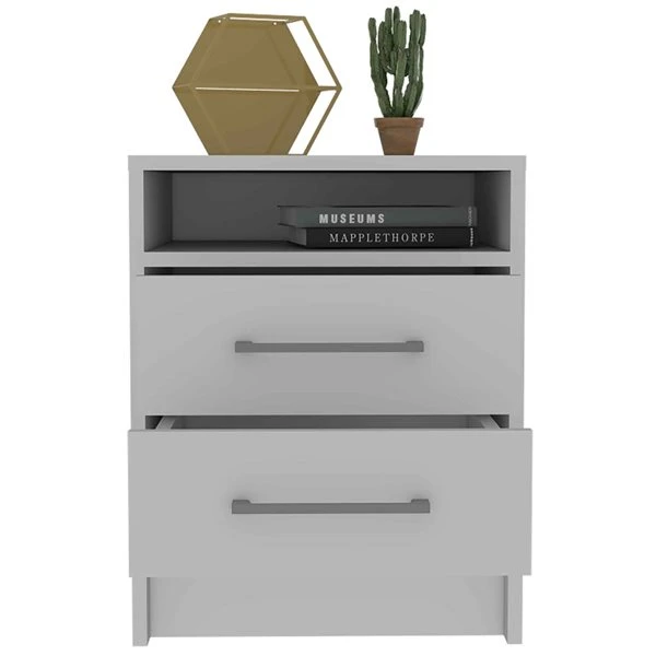 This beautiful and well-designed nightstand adds a touch of elegance to any space.The Philadelphia nightstand allows you to store your belongings next to your bed. The spacious top, the shelf below and the two drawers are great options for storage. This nightstand is made of engineered wood with metal hardware, making it sturdy and durable.