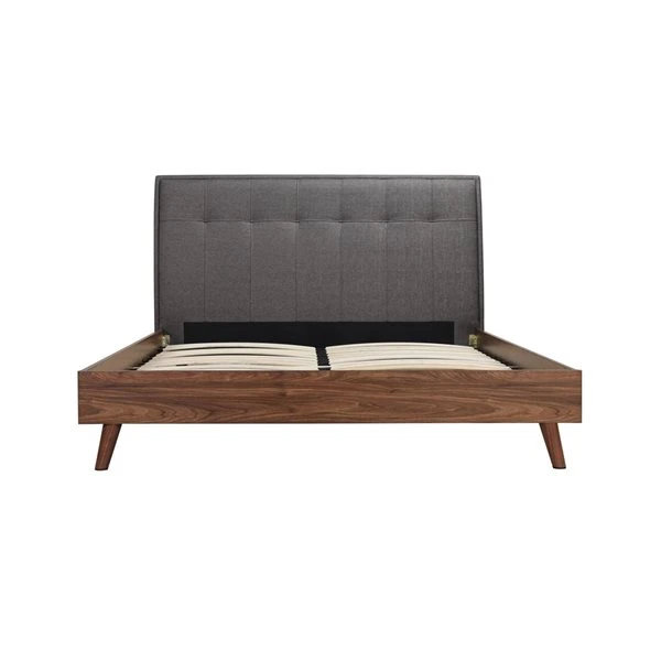 - Footboard and rails feature 3D foil laminate brown faux wood finish to contrast with upholstered headboard
