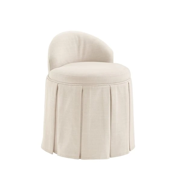 This fabulous, skirted vanity stool has classic and versatile practicality. It features a slipcover linen upholstery and a subtle curved backrest, packaged into an overall stylish unit. This beautiful piece can blend with any classic or traditional decor and is particularly complementary to any interior design. This luxurious vanity chair is the ultimate unit that will create a glamorous, eye-catching look and could be used in your bedroom, your makeup room or your entryway.