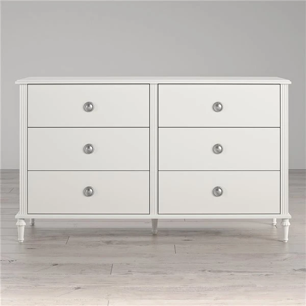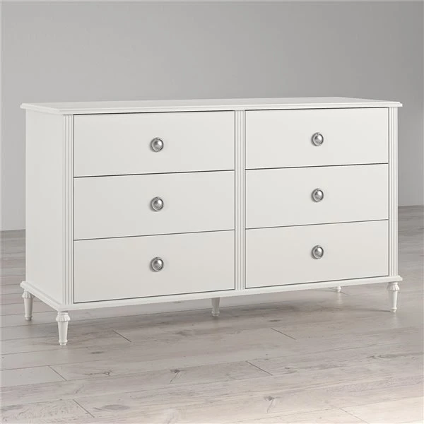 Your little one has most certainly outgrown her childhood bedroom and has been scouring the internet for teen bedroom ideas to transform her space from a kid’s playroom to her own sophisticated sanctuary space free from grown-up demands and rules. Let the Little Seeds Rowan Valley Arden 6-drawer white kids’ dresser be an elegant addition to your child’s new grown up space. Made of laminated MDF and particle board with a chic white finish and posh silver ring drawer pulls, this beautiful white kids’ dresser will be a perfect piece for your child’s clothing storage needs.