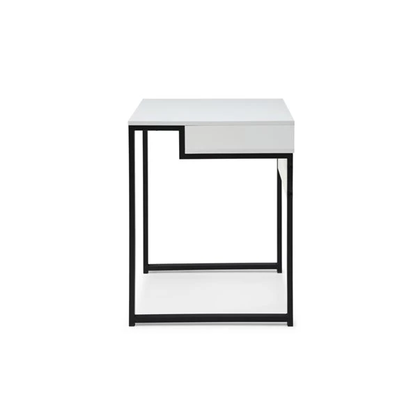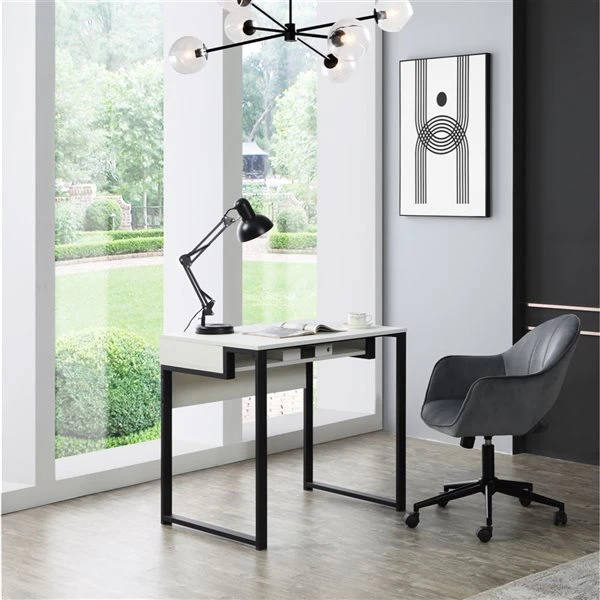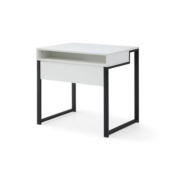 This sleek, modern/contemporary rectangular writing desk is great as a home office workstation or dorm room study table. Itβs functional yet stylish and has plenty of surface space and two open storage compartments for useful work or school accessories. It combines durable steel with MDF to create this one-of-a-kind piece that draws anyone to its appeal. This rectangular writing desk provides a modern-style workstation suitable for any dorm room or office that needs a space-saving desk. It is intended for various settings, including the office, the makeup room or the bedroom.