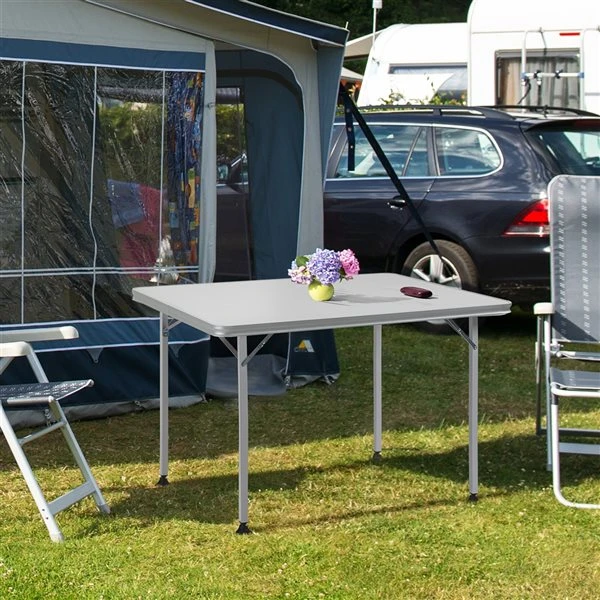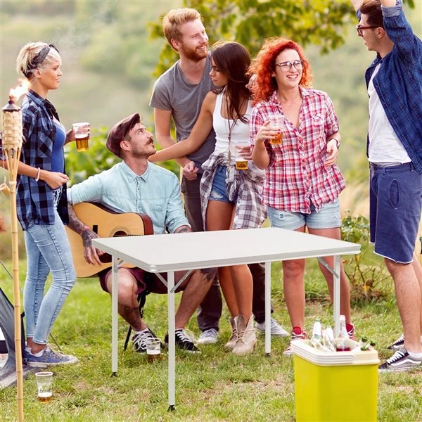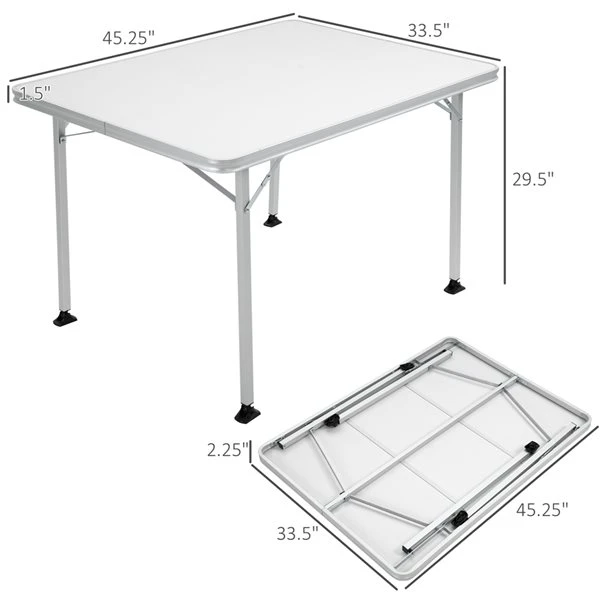 The Outsunny folding table offers the ideal portability and convenience to enjoy your social events. This multipurpose table is perfect for camping, picnics, barbecue parties, or buffets. Use one for a small group or line them up end-to-end to create a long buffet-style table.