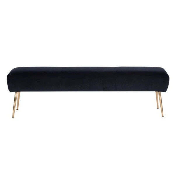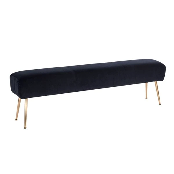 Rich upholstery meets bright metallic accents in this bench to create a retro-glam addition to your space. Four gold-finished tapered and splayed metal legs support this bench’s clean-lined silhouette for a mid-century modern design.