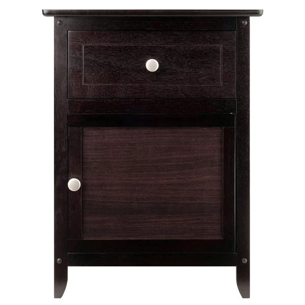 Night Stand with simple design and plenty of storage include one drawer and cabinet. Satin Nickel knob. Available in four finishes. Ready to Assemble.